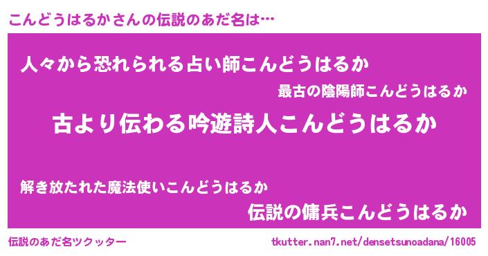 | 男性向けラノベタイトル風あだ名 | 『こんどうはるかという概念が存在しない退屈な世界 』 |
