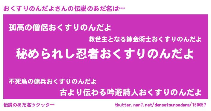 | 意味不明あだ名 | 『おくすりのんだよフォーエバー』 |