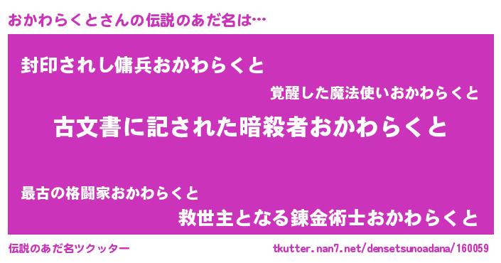 | 意味不明あだ名 | 『永久保存おかわらくと』 |