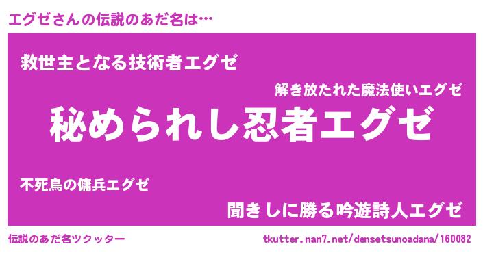 | ヒーロー風カッコイイあだ名 | 『ウルトラエグゼマン』『仮面エグダー』 |