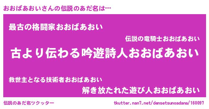 | ヒーロー風カッコイイあだ名 | 『ネオオオバアオイ』『仮面オオダー』 |