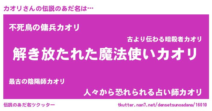 | 意味不明あだ名 | 『住所不定無職カオリ(13歳)』『自称カオリ』 |