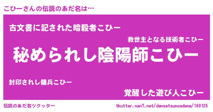 | ヒーロー風カッコイイあだ名 | 『仮面コヒダー』『ウルトラこひーマン』 |