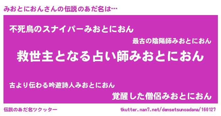 | 意味不明あだ名 | 『自称みおとにおん』 |