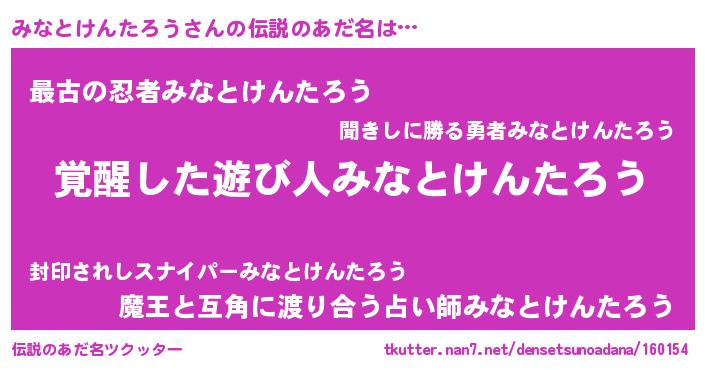 | ポケモン風あだ名 | 『ヒミナトケンタロウ』『ミーナイ』 |