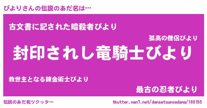 | ヘコむあだ名 | 『びよにー』『びより(爆)』『豆乳』 |