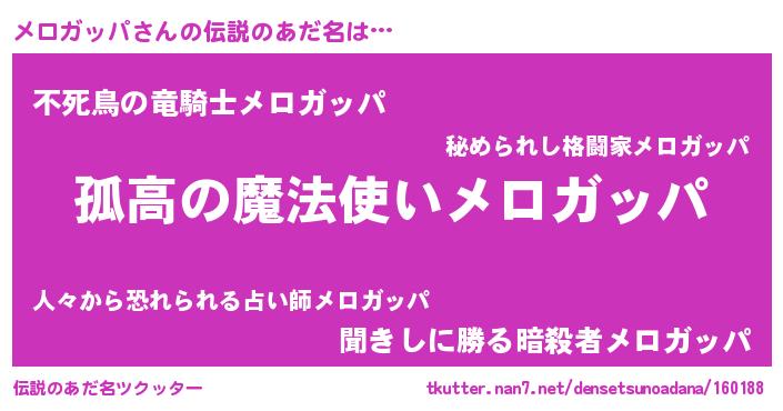 | 男性向けラノベタイトル風あだ名 | 『魔法科高校のメロガッパ』 |