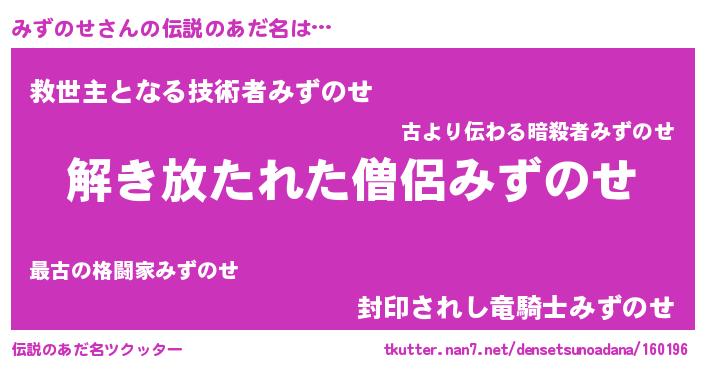 | ヘコむあだ名 | 『みずっ子』『みずにー』『牛乳』 |