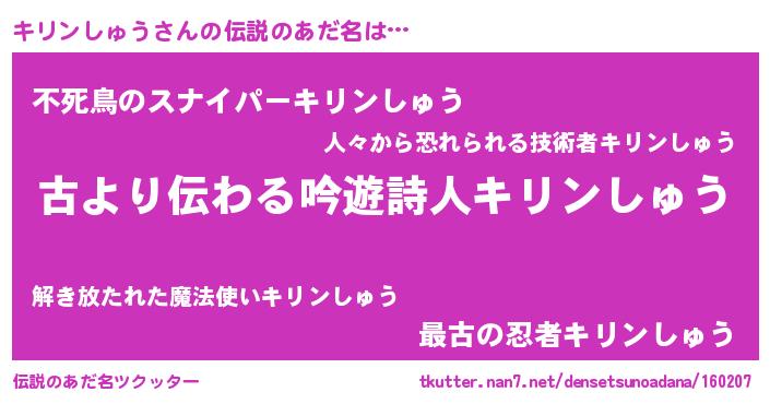 | ヘコむあだ名 | 『キリンしゅう(小並感)』『キリっふぃ~』 |