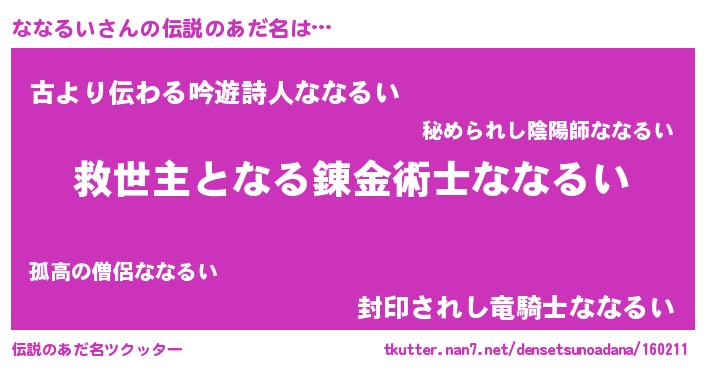 | ヒーロー風カッコイイあだ名 | 『天空の使者ななるい』『仮面ナナダー』 |