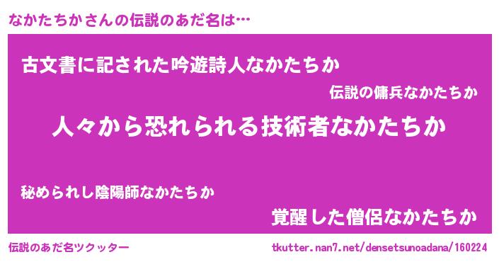| ヘコむあだ名 | 『なかたちか(小並感)』『なかっちょ』 |