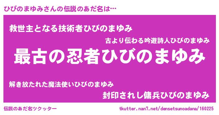 | ファンタジー風あだ名 | 『エターナルヒビノマユミー』 |