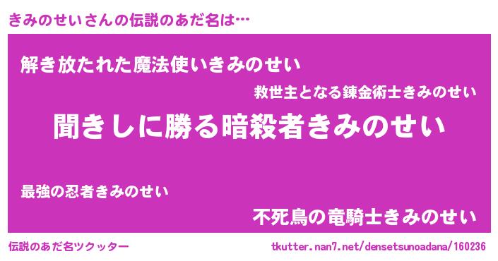 | ファンタジー風あだ名 | 『ゼキミトゥ』『キミディッシュ』 |