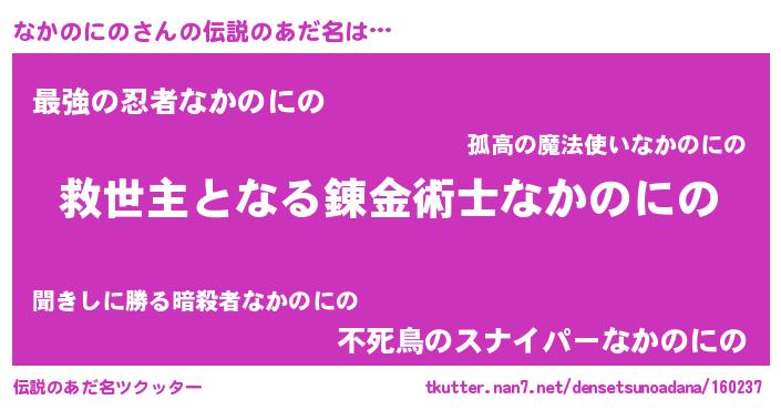| 胡散臭い通販商品みたいなあだ名 | 『モンドセレクションを受賞した隕石のかけら…その名も「なかのにの」』 |