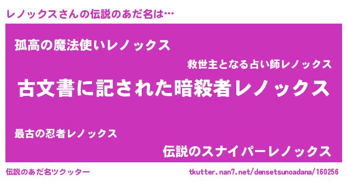 | 男性向けラノベタイトル風あだ名 | 『レノックスに滅ぼされるだけの簡単なお仕事です』 |