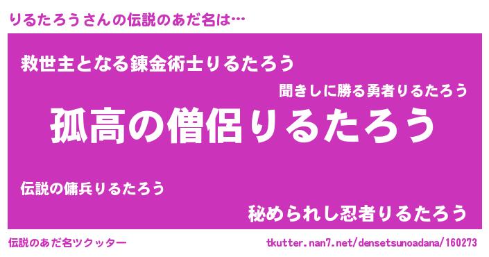 | 女子向けラノベタイトル風あだ名 | 『りるたろうは平凡を望む』 |