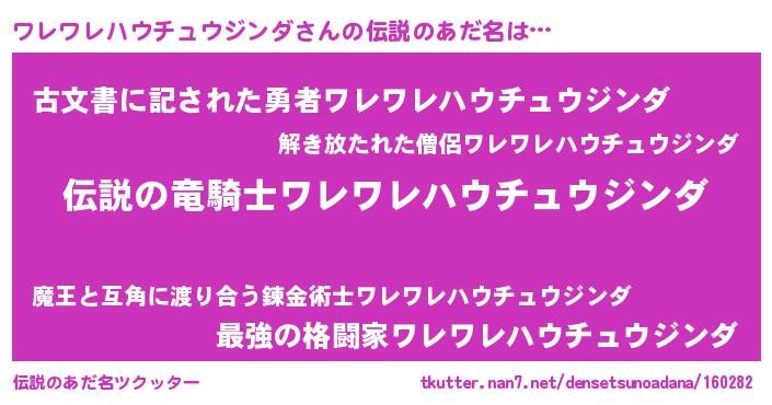 | ヒーロー風カッコイイあだ名 | 『スーパーワレワレハウチュウジンダ』 |