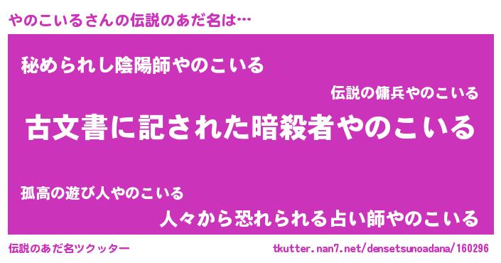 | ヘコむあだ名 | 『やのこいる(笑)』『つくし』 |
