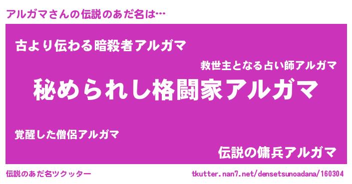 | 男性向けラノベタイトル風あだ名 | 『やはりアルガマの青春ラブコメはまちがっている 』 |