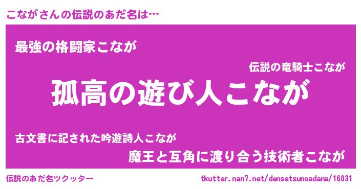 | 女子向けラノベタイトル風あだ名 | 『こながは平凡を望む』『こなが恋絵巻』 |