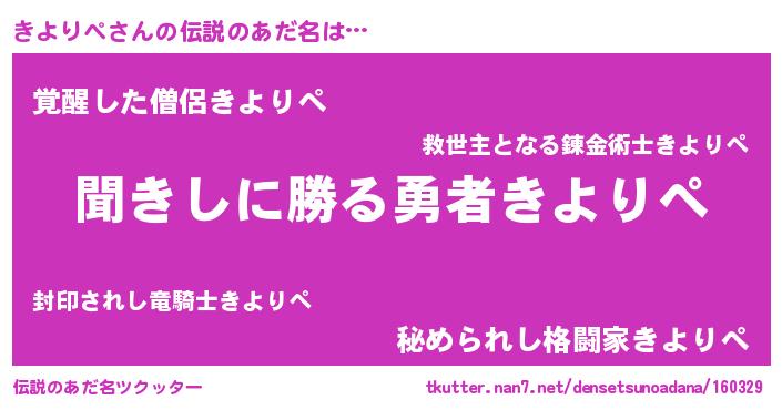 | 意味不明あだ名 | 『自称きよりぺ』『永久保存きよりぺ』 |