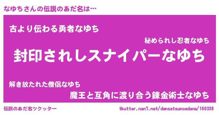 | 意味不明あだ名 | 『ペロリンなゆち』『永久保存なゆち』 |