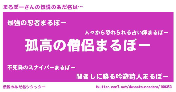 | ヒーロー風カッコイイあだ名 | 『暗黒騎士マル』『ウルトラまるぼーマン』 |