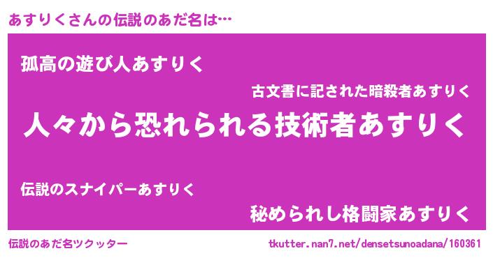 | 胡散臭い通販商品みたいなあだ名 | 『100人中100人が認めたマグネット磁石…その名も「あすりく」』 |