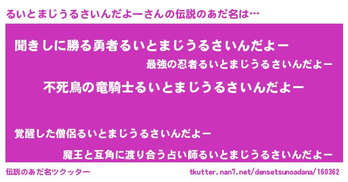 | ヒーロー風カッコイイあだ名 | 『スーパールイトマジウルサインダヨー』 |