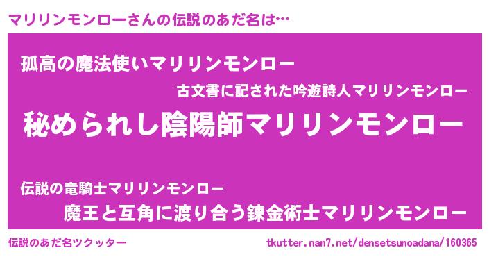 | 男性向けラノベタイトル風あだ名 | 『はたらくマリリンモンローさま!』 |
