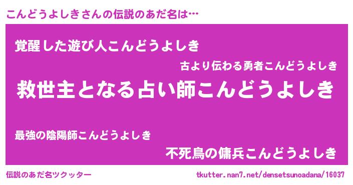 | 男性向けラノベタイトル風あだ名 | 『こんどうよしき~年齢イコール彼女いない歴の魔法使い~』 |