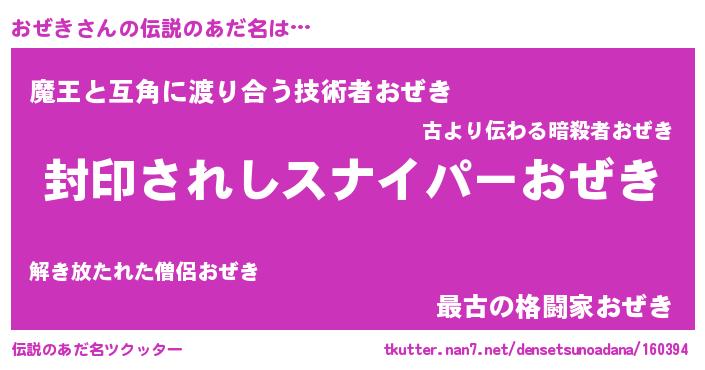 | 胡散臭い通販商品みたいなあだ名 | 『億万長者になれる霊験あらたかなお札…その名も「おぜき」』 |
