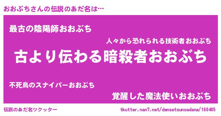 | 意味不明あだ名 | 『住所不定無職おおぶち(40歳)』 |