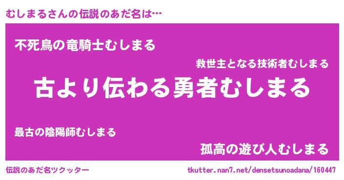 | ヘコむあだ名 | 『むしまる(苦笑)』『むしふぇ~』 |