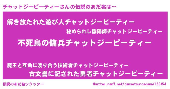| ヒーロー風カッコイイあだ名 | 『スーパーチャットジーピーティー』 |