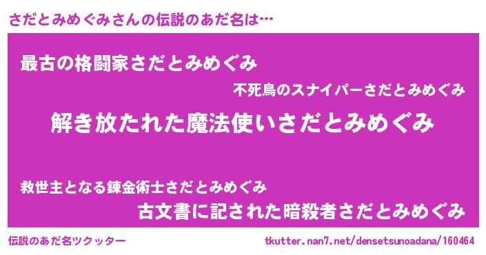 | ヒーロー風カッコイイあだ名 | 『銀牙騎士サダ』『ネオサダトミメグミ』 |
