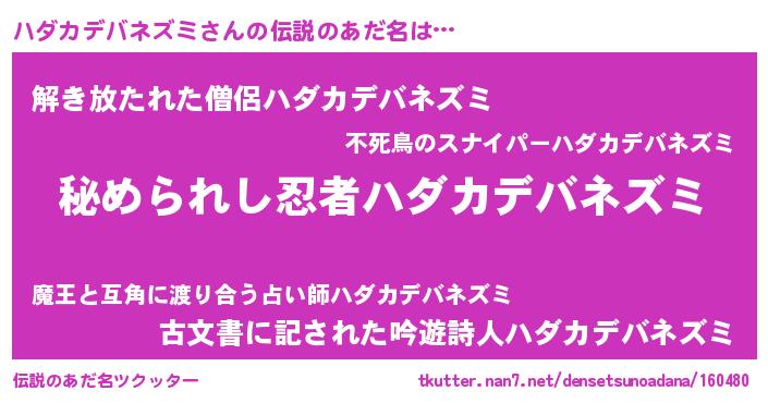 | ポケモン風あだ名 | 『メロハッダ』『ハダカダネ』 |