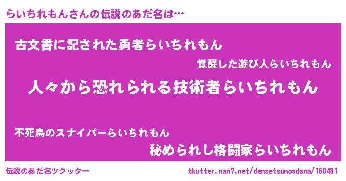 | ヘコむあだ名 | 『らいちれもん(笑)』『レバニラ』 |