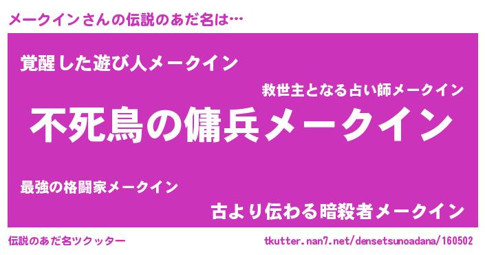 | ヒーロー風カッコイイあだ名 | 『スーパーメークイン』『銀牙騎士メー』 |