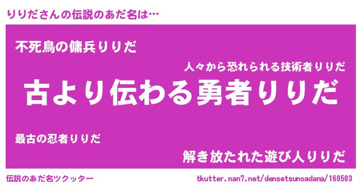 | 男性向けラノベタイトル風あだ名 | 『りりだという概念が存在しない退屈な世界 』 |