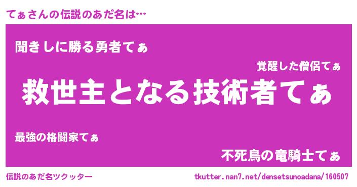 | 胡散臭い通販商品みたいなあだ名 | 『モンドセレクションを受賞したマグネット磁石…その名も「てぁ」』 |