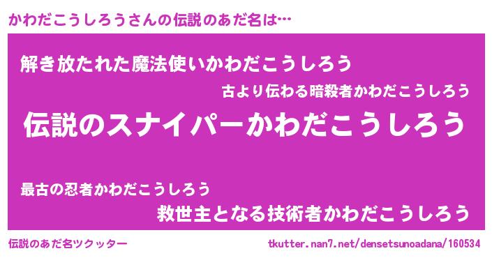 | ヒーロー風カッコイイあだ名 | 『スーパーカワダコウシロウ』 |