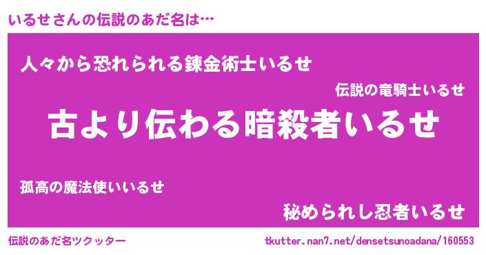| 意味不明あだ名 | 『永久保存いるせ』『自称いるせ』 |