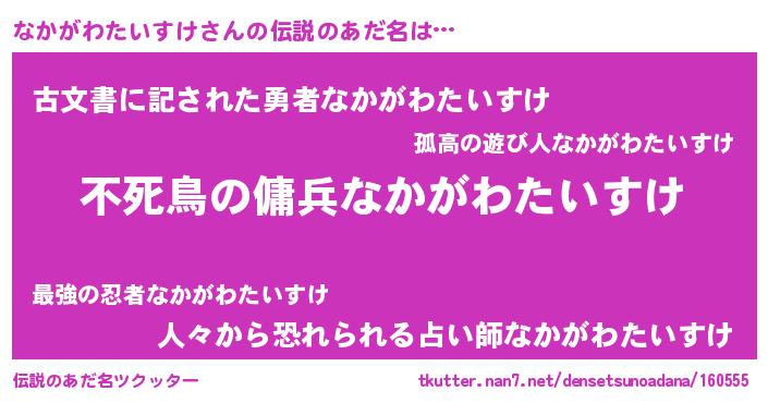 | ヒーロー風カッコイイあだ名 | 『仮面ナカダー』『ネオナカガワタイスケ』 |