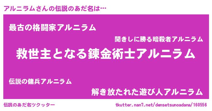 | ヒーロー風カッコイイあだ名 | 『天空の使者アルニラム』『魔戒騎士アル』 |