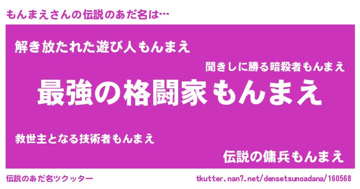 | ヒーロー風カッコイイあだ名 | 『最強戦士モンマエ』『仮面モンダー』 |