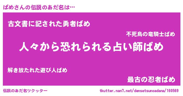 | 男性向けラノベタイトル風あだ名 | 『バメスレイヤー』 |