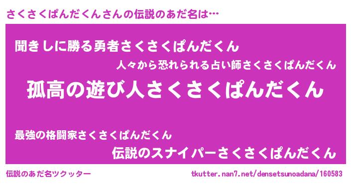 | 意味不明あだ名 | 『とにかく怪しいさくさくぱんだくん』 |