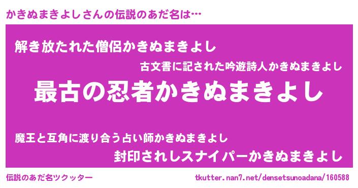 | ヒーロー風カッコイイあだ名 | 『サイバー戦士カキヌマキヨシ』 |