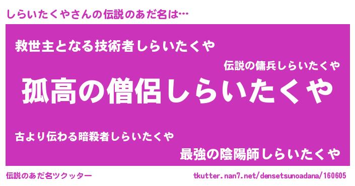 | 意味不明あだ名 | 『とにかく怪しいしらいたくや』 |